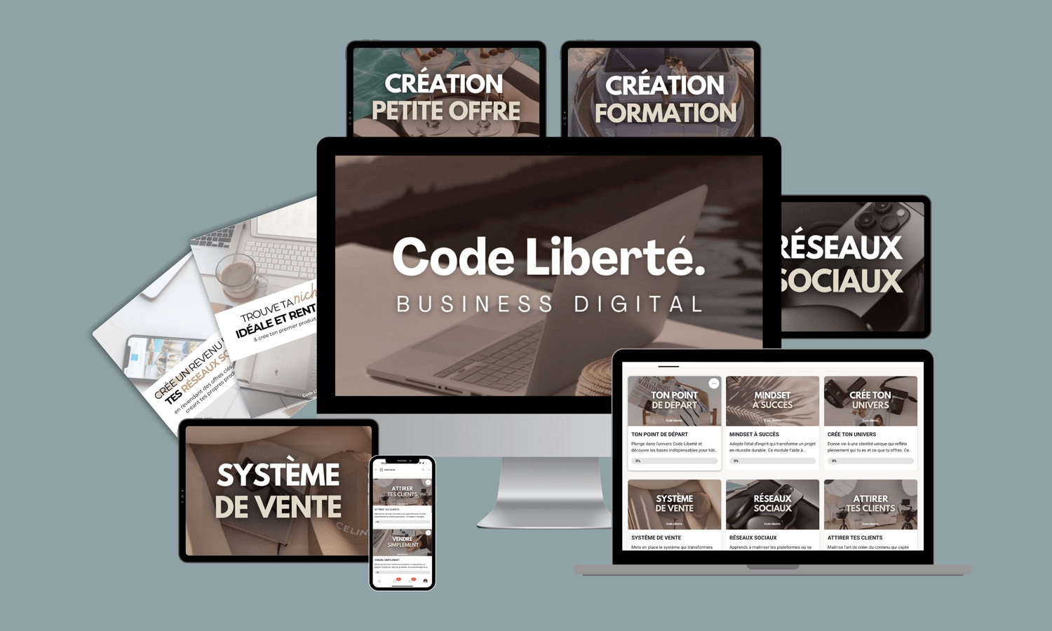 Aujourd’hui, j’ouvre un nouveau chapitre avec Code Liberté. Ma mission : aider un maximum de personnes à vivre du digital, que ce soit en revendant ou en créant leurs propres produits digitaux (ebooks, formations, coaching, etc.).